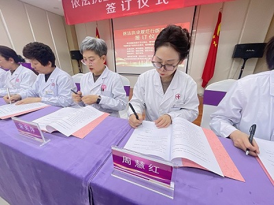 一笔一划,签下的是姓名,许下的是对生命的承诺,扛起的是沉甸甸的责任。这标志着依法执业、规范行医已成为全院上下的共同意志与公开誓言。