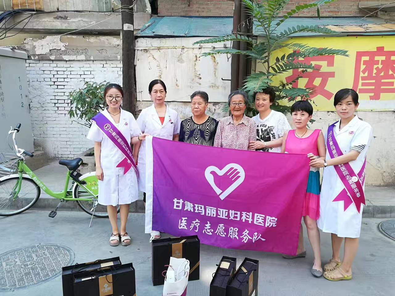 为进一步弘扬尊老美德,积极倡导互助友爱的社会主义核心价值观,保障社区居民身体健康,7月19日,甘肃玛丽亚妇科医院(医疗志愿服务队)携手广武门街道民勤街社区,开展“邻里守望 健康相伴”为主题的妇科病保健知识讲座暨关爱空巢老人入户体检、慰问活动。为社区广大女性朋友讲授妇科保健知识,为社区空巢老人测量血压、血糖,进行保健咨询、心理疏导,并为老人送去夏日清凉礼品,玛丽亚医疗服务志愿者的这一举措,受到社区干部、居民及老人们的一致好评。