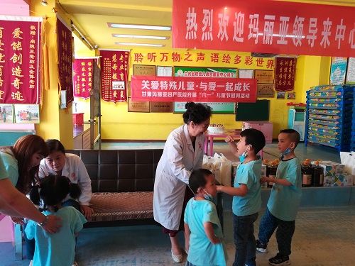 5月28日,正值六一来临之际,甘肃玛丽亚妇产医院张瑞兰主任、孙淑娴主任及医护人员组成的医疗志愿者一行来到兰州启聪聋儿语言康复中心,为TI听力障碍儿童送上儿童节臻爱礼物与健康体查,陪伴孩子们快乐过六一。