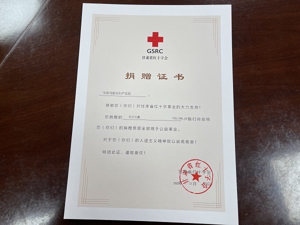 一方有难,八方支援。近日,甘肃玛丽亚妇产医院举行了向甘肃临夏州积石山县抗震救灾捐赠仪式,通过甘肃省红十字协会向灾区捐款5万元。